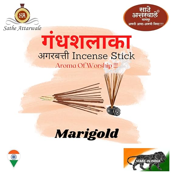 Marigold Premium Agarbatti by Sathe Attarwale | Luxury Incense Sticks for Pooja, Aromatherapy, Meditation, Yoga, Home (50)