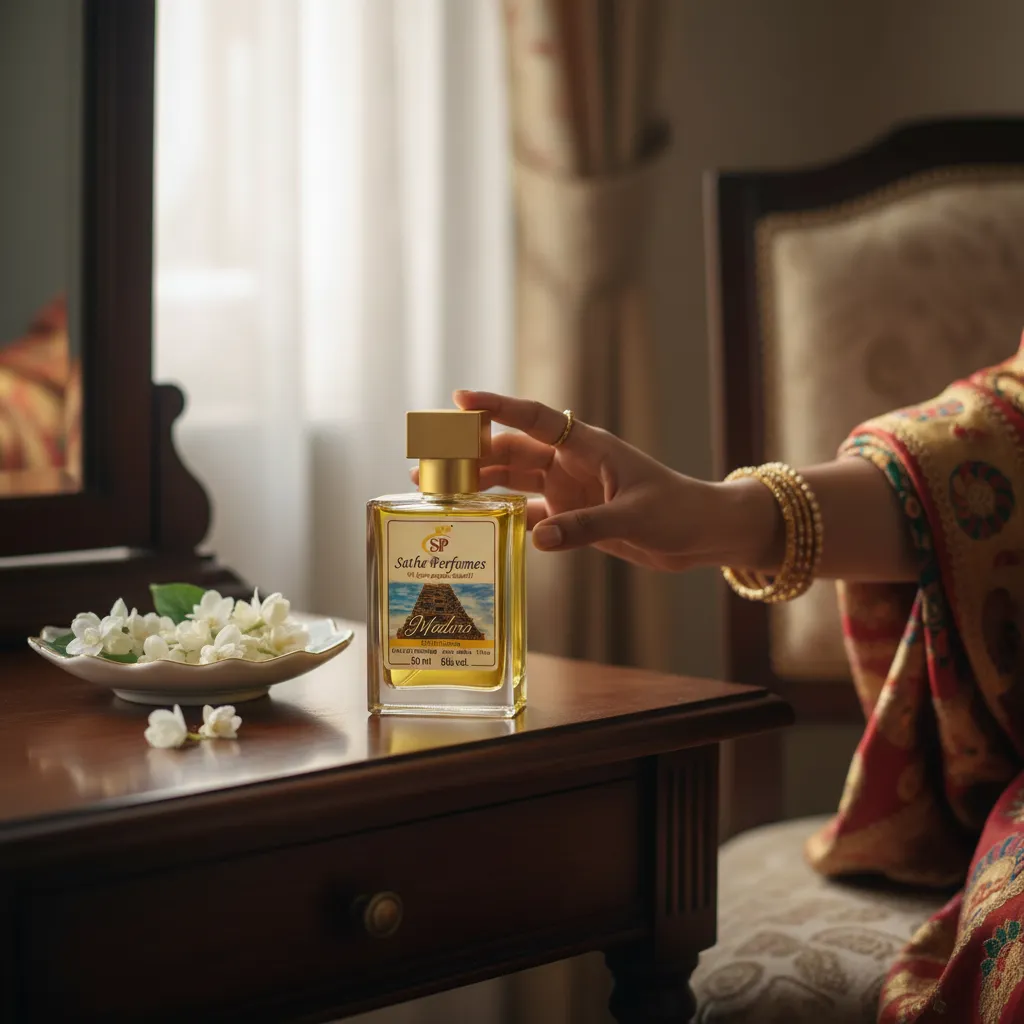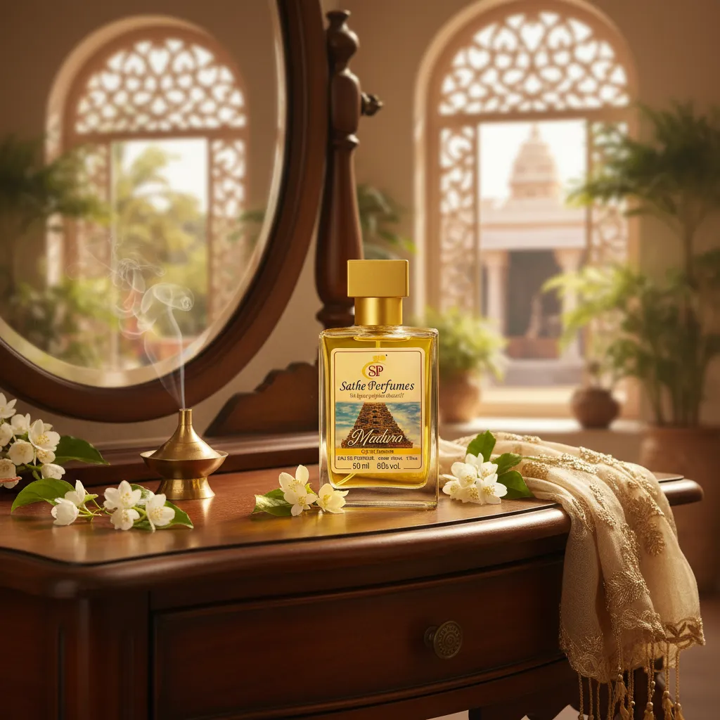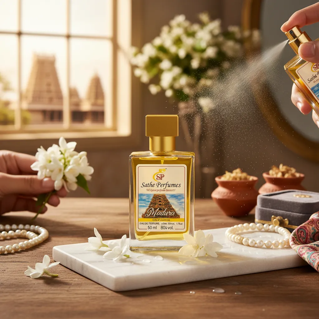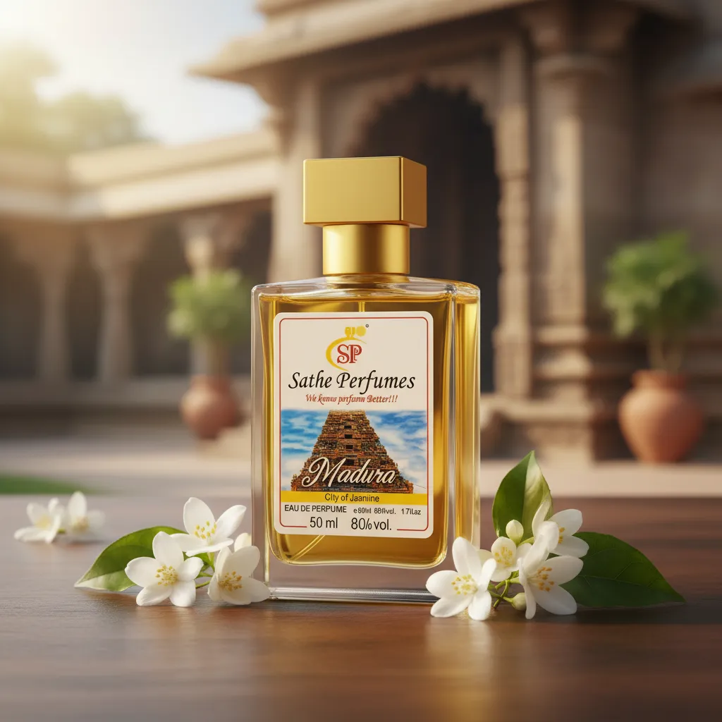 a fragrance that captures the spiritual beauty and historical charm of Madurai, the city known for its magnificent temples and vibrant culture.